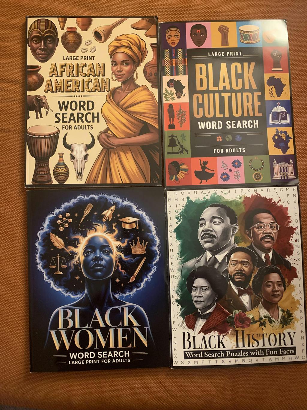 I bought all four designs with a bonus book. The books were received in the same manner in which they appear in the ads. The books are well printed in large font with beautiful covers. I look forward to doing the puzzles and sharing the books as gifts to friends and family.